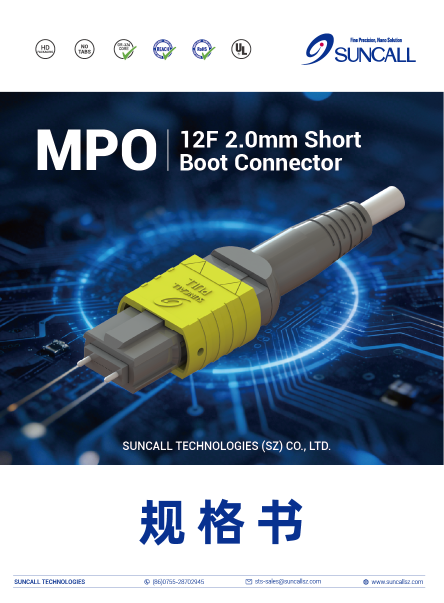 | MPO | MPO Series | PA | Pre Assy | M | Male | AQ | Aqua | W08 | 8 Core | SM | Single Mode | RS | Round Short Boot | TC | Two Crimp | 20 | Φ2.0mm | L | Suncall Logo |