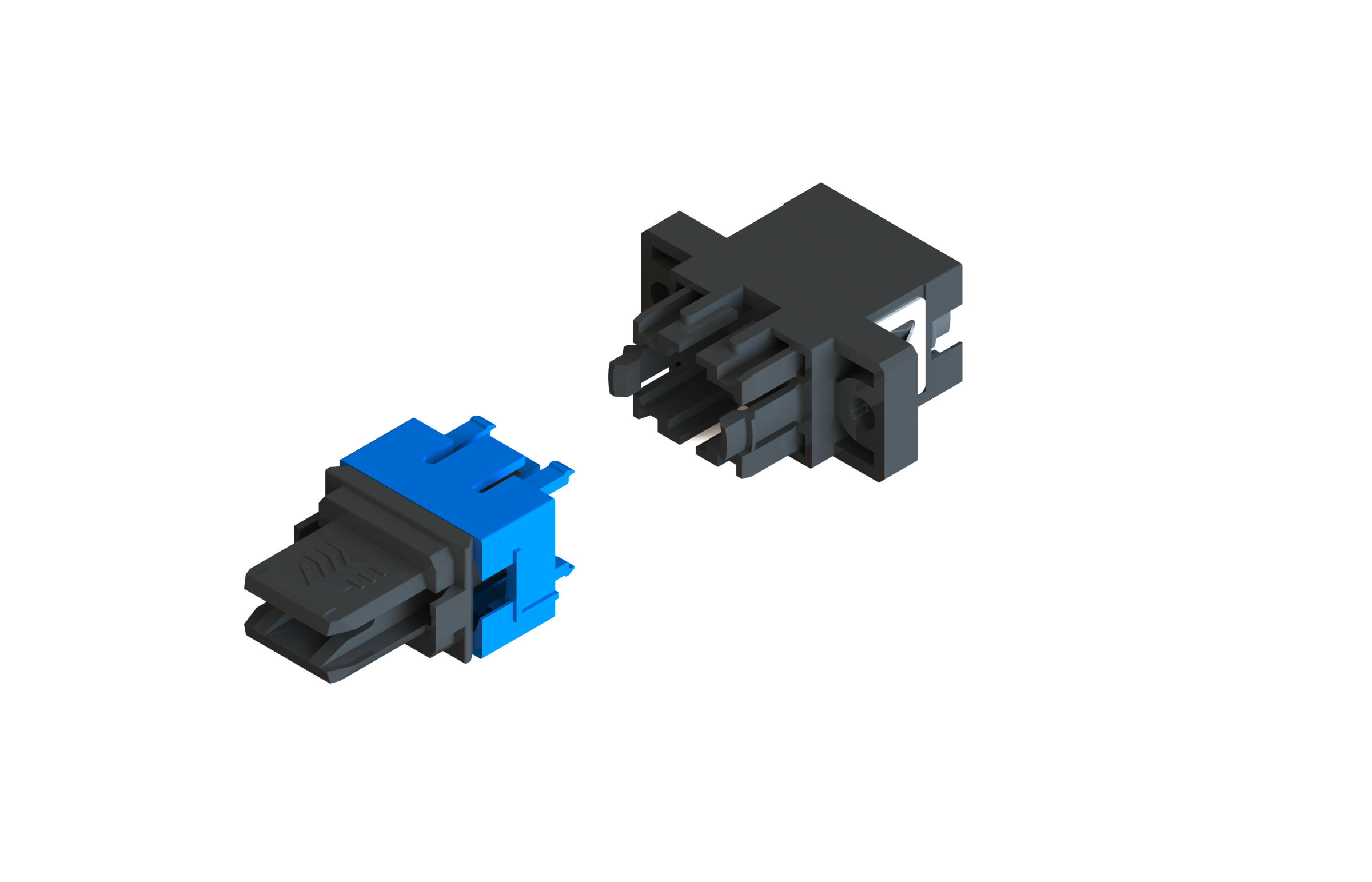 MPO キー切替えアダプタの設計により、コネクタの適切な方向が確保され、信頼性の高い接続と性能を実現します。この独自のアダプタを取り付けることで、必要に応じてアダプタのキーを上向きまたは下向きに変更できます。MPO キー切替えアダプタは使いやすい設計で、混合ケーブルアセンブリの要求事項をほぼ完全に満たします。