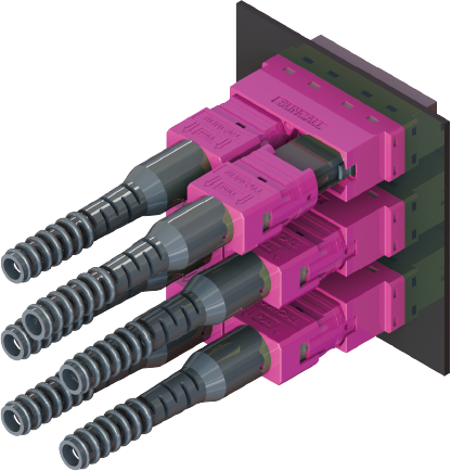新发布的16F拉拔尾套连接器将我们成熟的技术应用至高光纤芯数 配置,采用标准偏心Key位设计,有两种尾套款式与两种线缆规格 (2.0mm与3.0mm)可选。