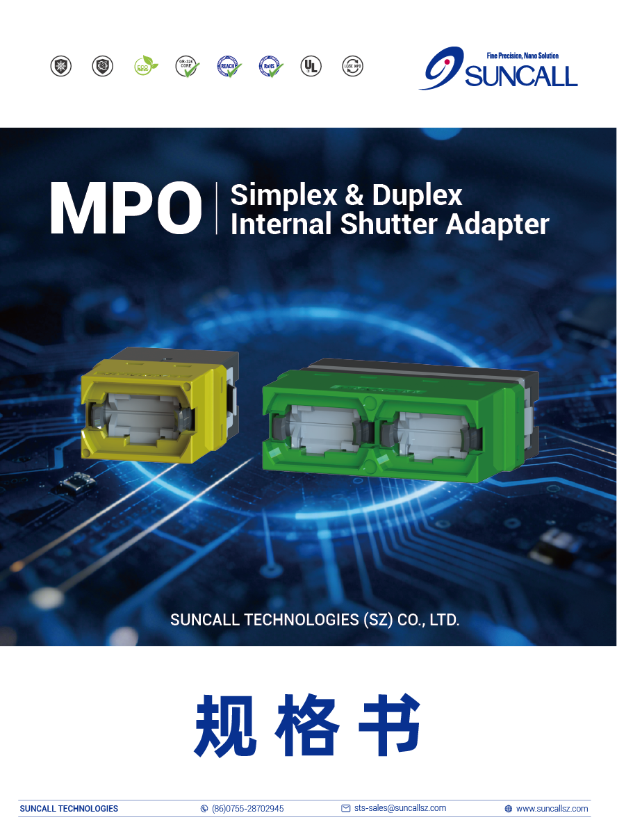 | MPO | MPO Series | 1 | Simplex(12F/24F) | I | White Shutter | UU | Key Up-Key Up | W | With Spring | W | With Flange Simplex Only | AQ | Aqua | AQ | Aqua | L | Suncall Logo |