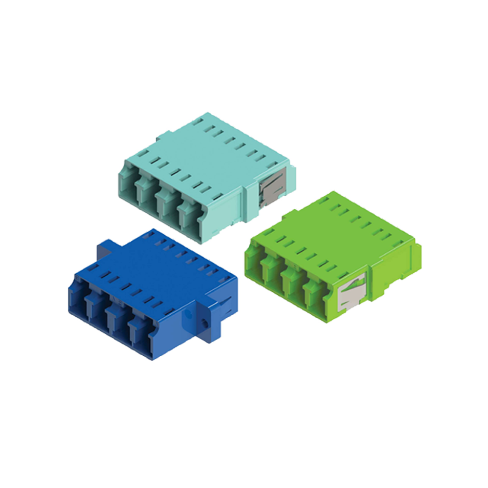 LC 纤薄型四联适配器采用空间优化设计,可同时容纳多条 LC 光纤光缆,提供螺纹法兰、金属卡扣及嵌入式等多种款式配置