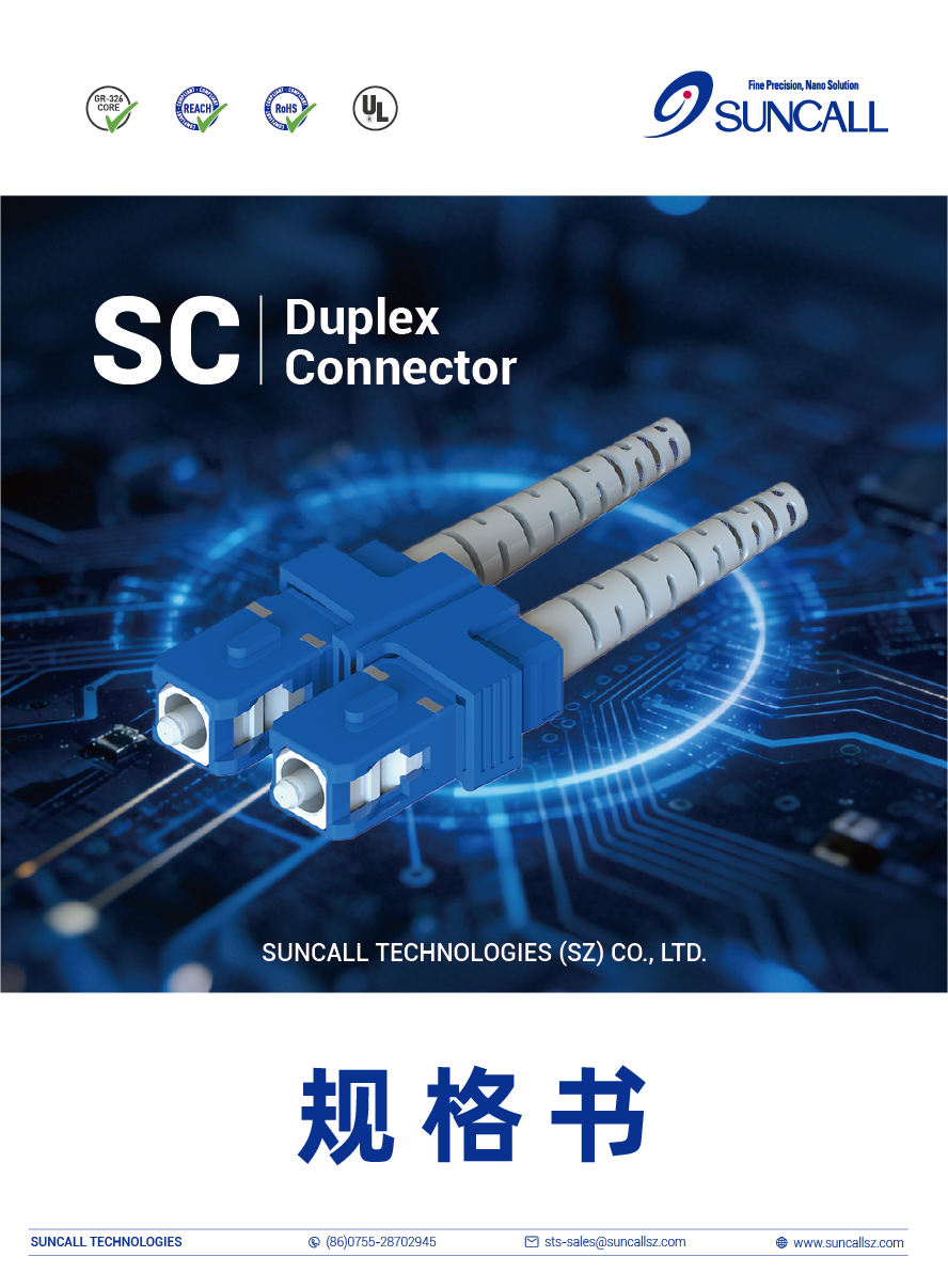 SC 连接器性能与可靠性广受好评,采用紧凑式设计,适配高密度应用场景,同时可为APC插芯配备锥面型及台阶型可选型号。产品搭载专属双联卡扣,可将两个单联连接器稳固拼接为双联结构。
